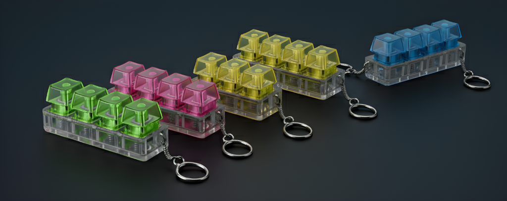 AuraKeyz is a compact mechanical stress reliever that combines smooth tactile keys with calming RGB light to help you relax, refocus, and recharge anytime.